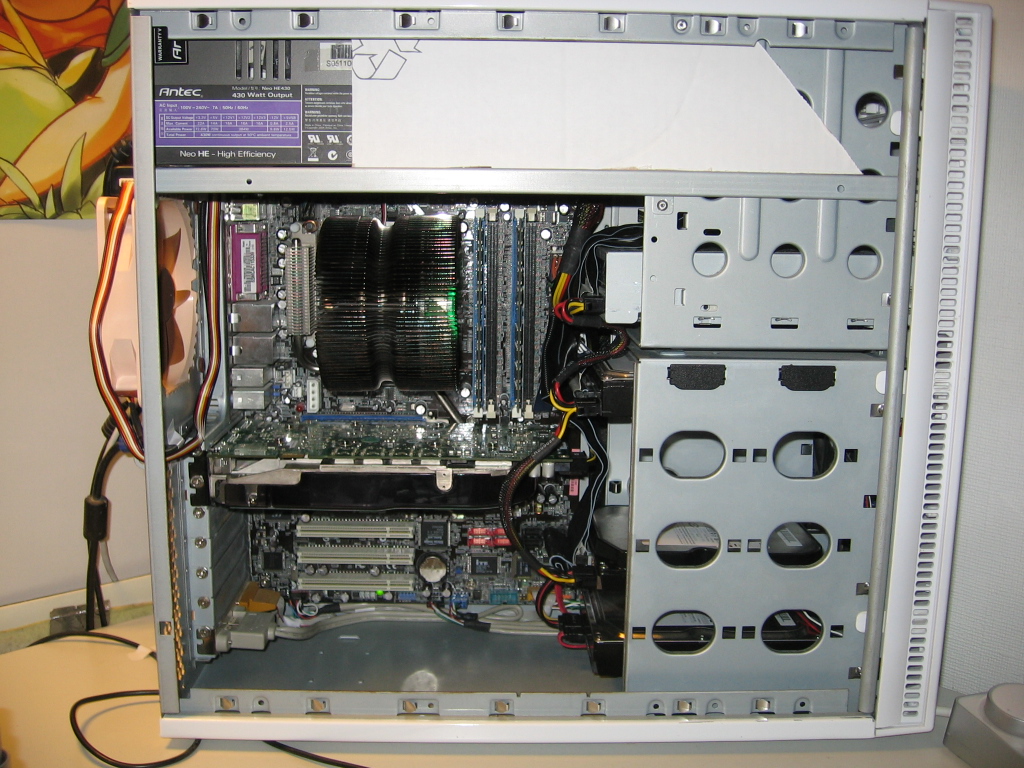 - Storage: 320GB, 2x500GB, 2x1TB HDDs, MSI GeForce 8600GS for secondary monitors